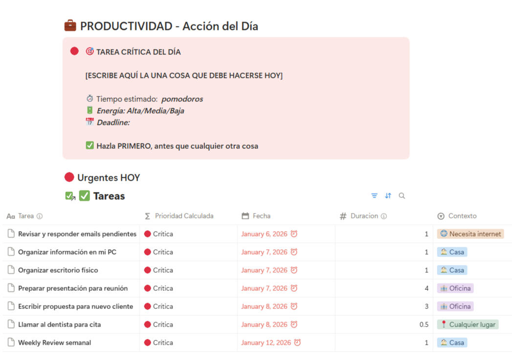 🧠 Productividad (Qué hacer ahora, no todo a la vez).